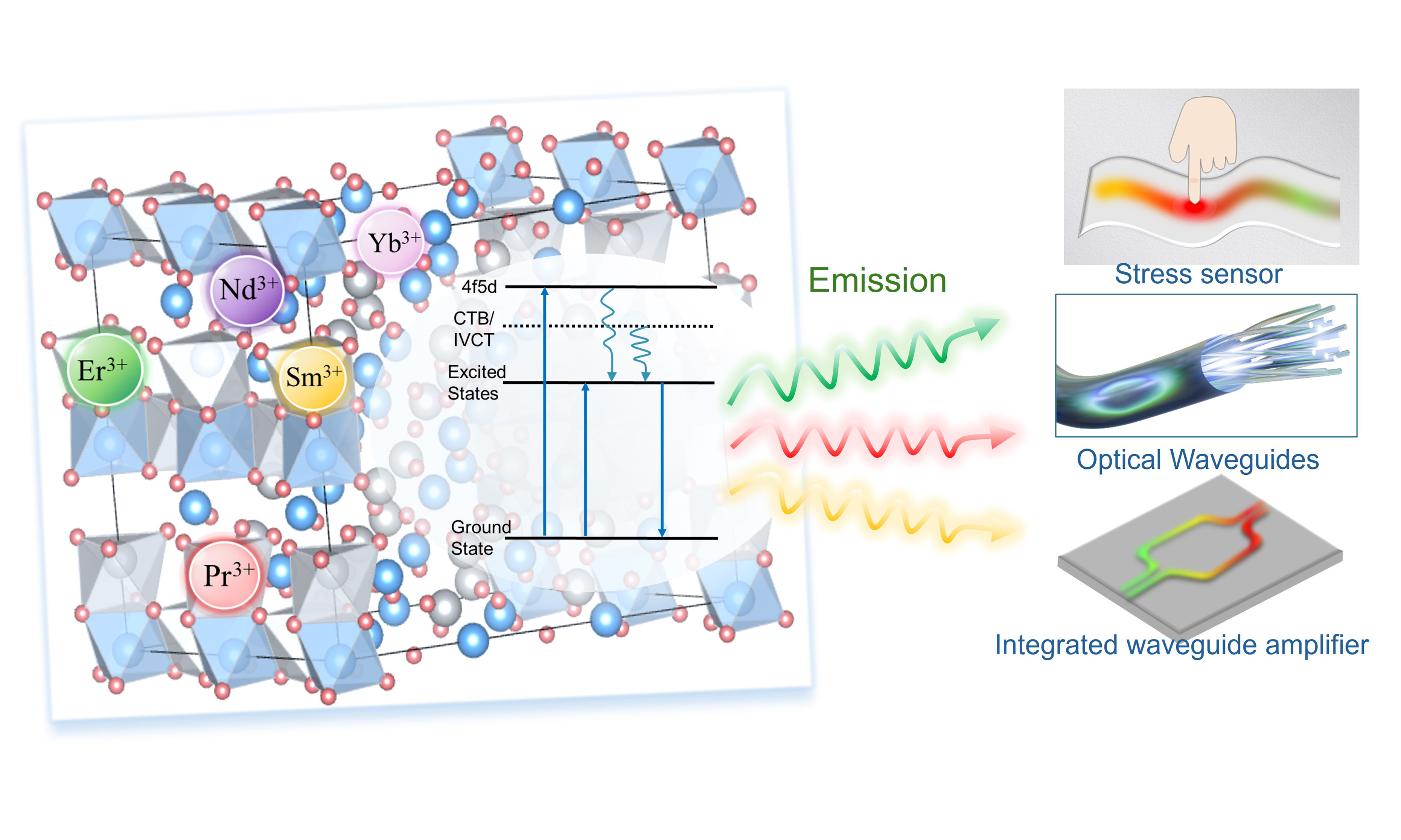 Beyond the commonly investigated Er3+, Yb3+, Nd3+, and Pr3+ ions, other RE elements such as Sm3+, Ho3+, Tm3+, Eu3+, Tb3+, and Dy3+ have been explored for their unique emission characteristics, offering additional spectral diversity and multifunctionality for photonic device applications.